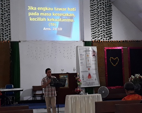 Ibadah tersebut dipimpin p;eh pelayan firman, Pdm Surya Roreng, dengan bahan renungan yang terangkat dari Amsal 24:10.