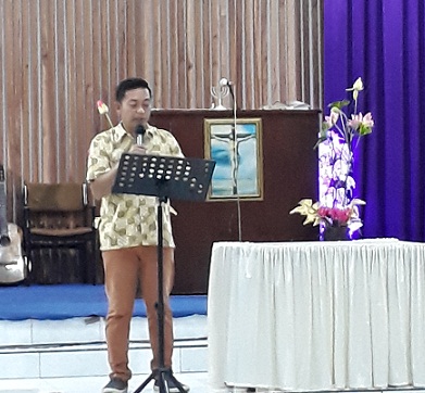 Ibadah dipimpin oleh pelayan firman Pdm. Surya Roreng, dan bahan renungan diangkat dari Kitab II Samuel 12:1-7 dengan nats “Natan Memperingatkan Daud Sehingga Daud Menyesal”.
