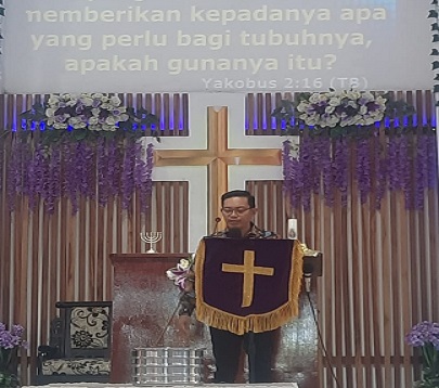 Ibadah dilayani oleh Pdm. Surya Roreng. Dalam khotbahnya, Pdm. Surya Roreng mengambil pembacaan Firman Tuhan dari kitab Yakobus 2:14 dst, dengan mengambil tema “Iman Next Level”.