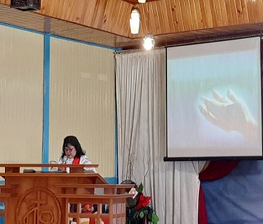 Doa berkat sebagai penutupan jalannya ibadah raya Minggu 12 dipimpin oleh ibu gembala Sidang Pdt. Mince Tebun, M. Pd. K.