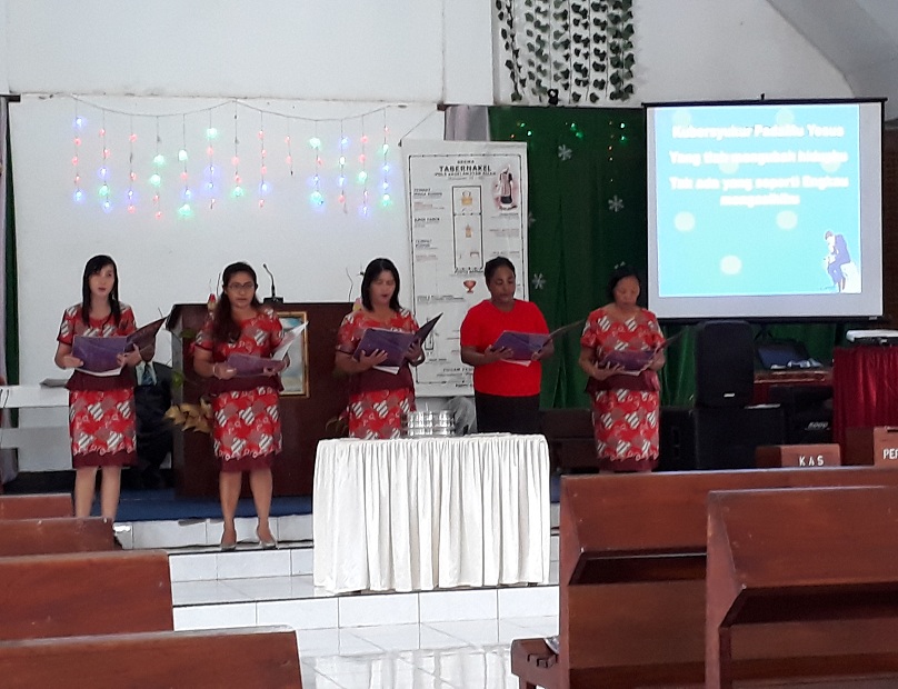 Ibadah minggu pagi di Jemaat GPT Kristus Raja Kalinona juga diisi dengan sangkor jemaat dan sakramen Perjamuan Suci.