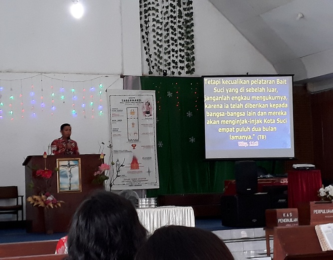 Ibadah minggu pagi tersebut dipimpin oleh Pdm. Surya Roreng, dengan mengangkat bahan renungan dari Kisah Para Rasul 19:1-12 dengan perikop “Paulus Di Efesus”.