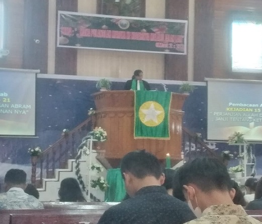 Kemudian ibadah memasuki penyampaian Firman Tuhan. Pembacaan Firman Tuhan diambil dari Kejadian 15:1-21 dengan nats “Perjanjian Allah dengan Abram, Janji tentang Keturunannya” dan Tema Khotbah : “Abraham Teladan Pembaharuan Iman”.
