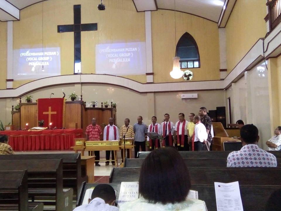 Ibadah Minggu Subuh di Jemaat GKI Tabernakel Oyehe, diisi dengan puji-pujian yang dibawakan oleh Vokal Grup Persekutuan Kaum Bapak (PKB) Galilea.