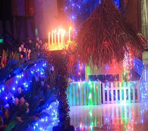 Ibadah natal diawali dengan pujian dan penyalaan lilin natal. Kemudian ibadah dilanjutkan dengan pembacaan firman Tuhan.