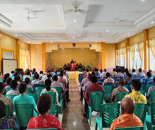 Ibadah diikuti oleh Segenap Aparatur Sipil Negara (ASN) se-Kabupaten Nabire dipimpin langsung oleh Pdt. Linda Upessy, S.Th., M.Pd, selaku Ketua Klasis GKI Nabire.