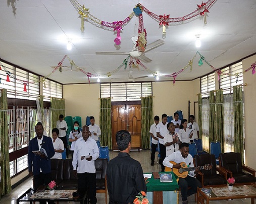 Nabire, Segenap jajaran Kantor Kementerian Agama Kabupaten Nabire yang terdiri dari Pejabat Penyuluh Pelaksana dan PPNPN yang beragama Kristen, melaksanakan Ibadah Oikumene, bertempat di Aula Kemenag Nabire, Senin (13/02/2023).