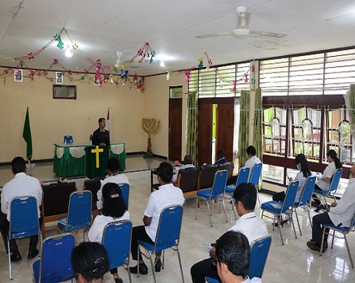 Ibadah ini dipimpin langsung oleh Penyuluh Agama Kristen Non PNS oleh Poniman Siburian, S.Pd.K dengan tema “Kasih”, terambil dari Roma 12 :9 berbunyi: “Hendaklah Kasihmu Jangan Pura-Pura! Jauhilah yang Jahat dan Lakukanlah yang Baik”.