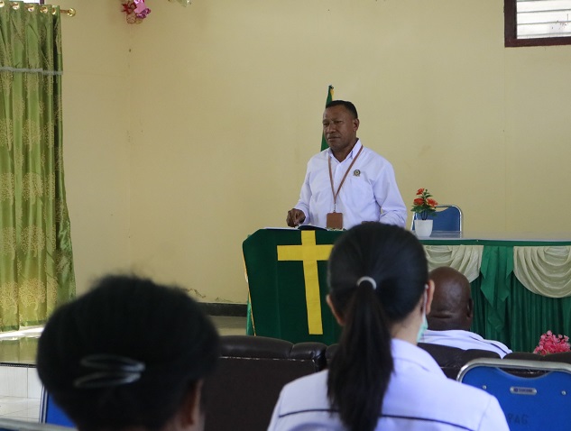 Ibadah ini dipimpin langsung oleh Kepala Sub Bagian Tata Usaha Robert Wopairi S.Th dengan tema “Carilah Tuhan dan Wajah-Nya”, terambil dari 1 Tawarikh 16 :11 berbunyi: Carilah tuhan dan kekuatan-Nya carilah wajahnya selalu.