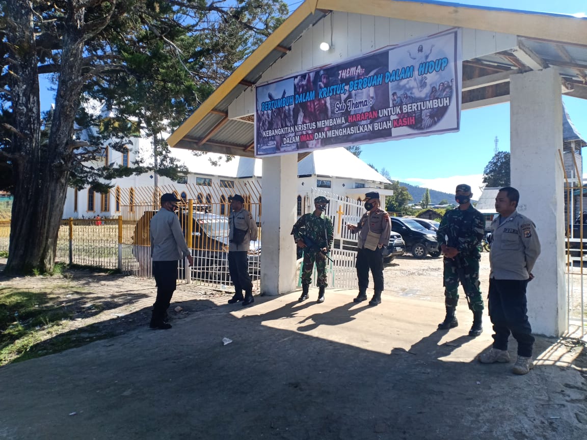 Deiyai, Pada hari Minggu tanggal 4 April 2021, bertempat di Kabupaten Deiyai, personel gabungan TNI-Polri di terjunkan guna melaksanakan pengamanan rangkaian kegiatan paskah.