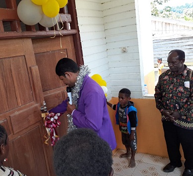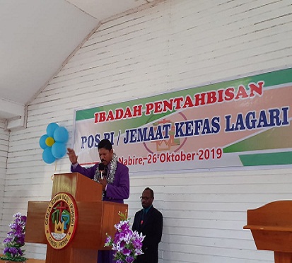 Nabire – Pentahbisan Gedung Ibadah Pos PI Kefas, Jalan Nabire Wapoga KM 63 kampung Manunggal Jaya (SP4) Legari, Distrik Makimi Kabupaten Nabire, pada tanggal 26 Oktober 2019 ditandai dengan pengguntingan pita dan pembukaan kunci pintu oleh ketua Klasis Nabire Kota Pdt. Mordekai Oila, S. Th.