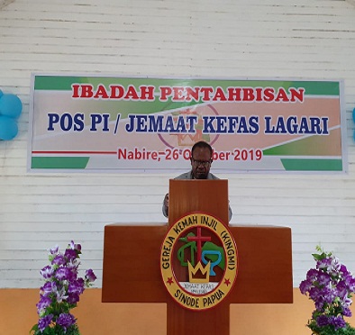 Ketua Klasis Nabire di kesempatan yang sama menyampaikan, sebagai dasar dari pentabisan gedung ibadah ini Firman Tuhan terambil dari Yohanes 2: 19 “Yesus Menyucikan Bait Allah”.