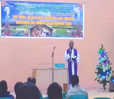 Firman Tuhan dalam ibadah natal ini disampaikan oleh Pater Yanuarius Douw. Yanuarius Douw dalam khotbahnya meminta kita merenungkan kelahiran Yesus Kristus di dunia untuk membawa keselamatan bagi umat manusia.