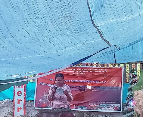 Nabire, Ikatan Pemuda Pelajar Mahasiswa/i Yewei Pouya Dadiyai (IPPM YEPODA) se-Nabire melaksanakan Ibadah Perayaan Natal Bersama, bertempat di halaman Sekretariat YEPODA, Jalan Siriwo, Kelurahan Siriwimi, Distrik Nabire, Kabupaten Nabire, Papua Tengah, Selasa (20/12/2022).