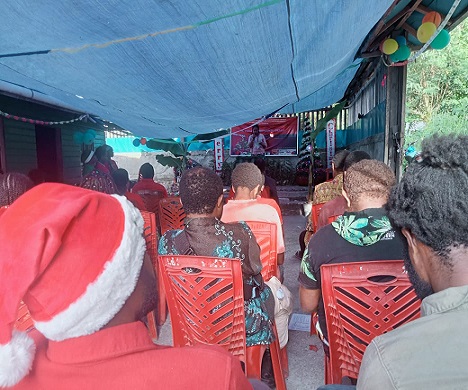 Ibadah dipimpin oleh Ferdinand Dogomo dan Marlin Bobii, diawali puji- pujian, doa dan persembahan syukur, pembacaan firman Tuhan, penyalaan lilin Natal, sumbangan puji-pujian dari Korwil Nabire, Korwil Jayapura serta Panitia Natal dan Badan Pengurus Inti.