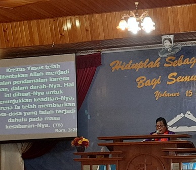 Ibadah ini dipandu oleh Liturgos Ibu Jeny Gobay, S.Pd, dan Firman Tuhan disampaikan oleh Gembala Sidang, Pdt. Mince Tebun, M.Pd.K.