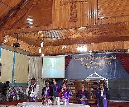 Usai khotbah, ibadah dilanjutkan dengan Sakramen Perjamuan Kudus, yang juga dipimpin oleh Gembala Sidang, Pdt. Mince Tebun, M.Pd.K.