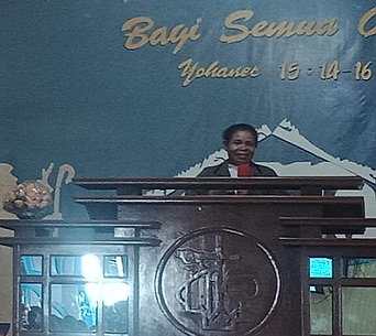 Ibadah disemarakkan dengan pujian kesaksian dari komisi Perkawan Jemaat untuk memperingati hari ibu.