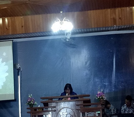 Pdt. Mince Tebun dalam renungannya mengajak jemaat untuk merenungkan beberapa poin berkat yang bisa kita terima lewat Salib.