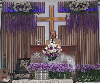 Ibadah dilayani oleh Bapak Gembala Pdt. Paulus Appang. Dalam khotbahnya, bapak Pdt. Paulus Appang mengambil pembacaan Firman Tuhan dari Kitab Amos 5 : 4 – 5 & 8 dst. Dengan tema bacaan adalah Panggilan Untuk Bertobat.