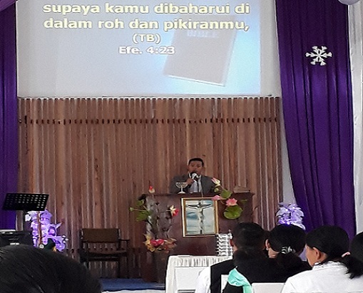 Dalam khotbahnya Pdm. Surya Roreng mereview materi Firman Tuhan minggu lalu tentang perjalanan bangsa Israel keluar dari tanah Mesir menuju tanah Kanaan. Allah mengatakan Hamba Allah yaitu Kaleb mempunyai jiwa yang berbeda dengan orang Israel lainnya karena Kaleb mengikut Tuhan dengan sepenuh hati.