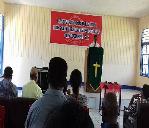 Bertempat di Kampus Universitas Satya Wiyata Mandala (USWIM) Kalibobo Nabire, telah dilaksanakan Ibadah Pengucapan Syukur sekaligus pembukaan kuliah perdana USWIM Nabire tahun akademik 2018/2019, senin 27 Agustus 2018.