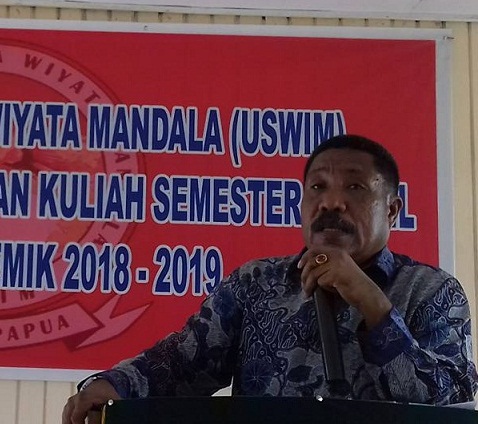 Dalam sambutannya, Rektor USWIM Nabire, Drs. petrus Izaach Suripatty M.Si, mengucapkan terima kasih kepada para mahasiswa bar yang telah mempercayakan USWIM Nabire sebagai tempat untuk mengembangkan dirinya dan memperoleh ilmu pengetahuan.