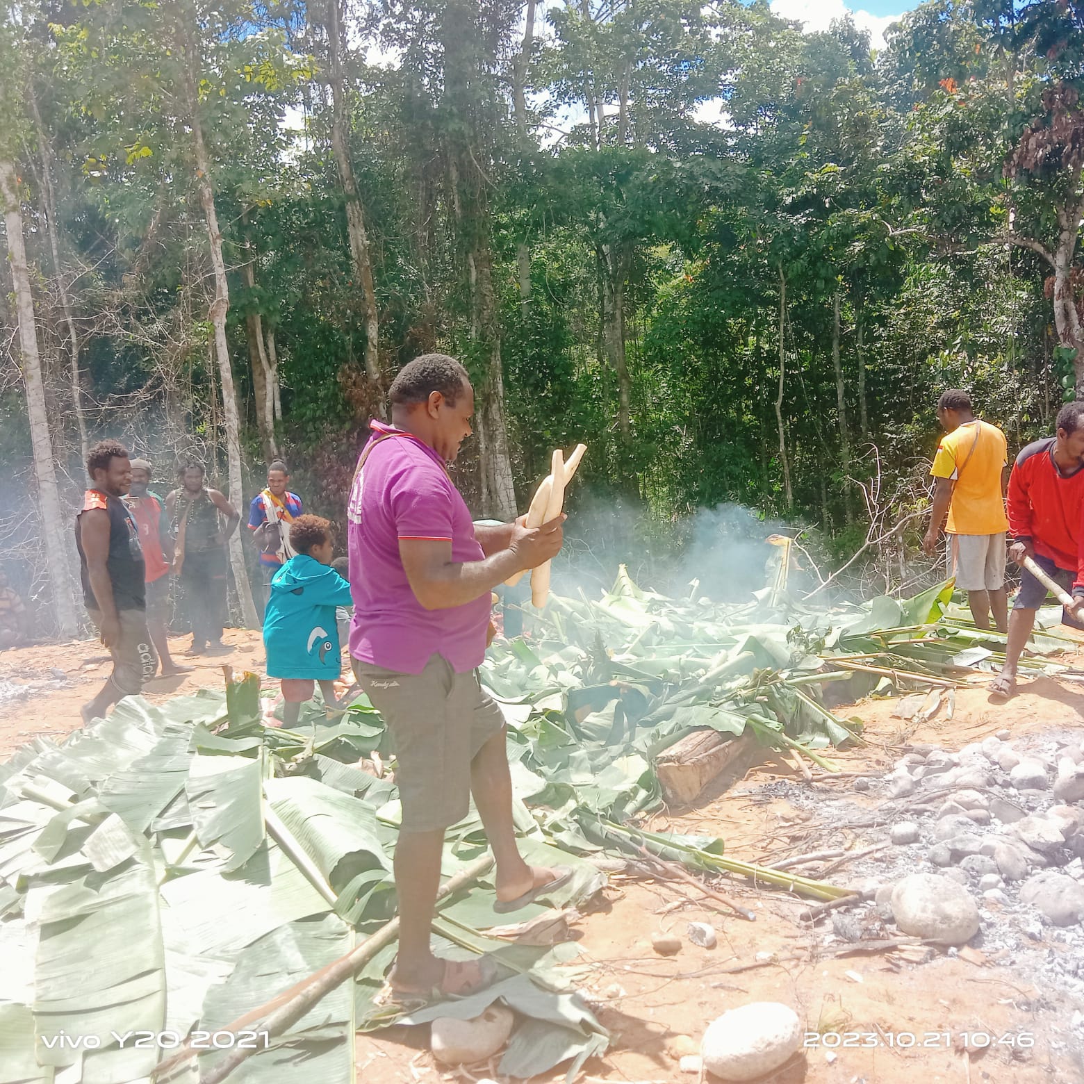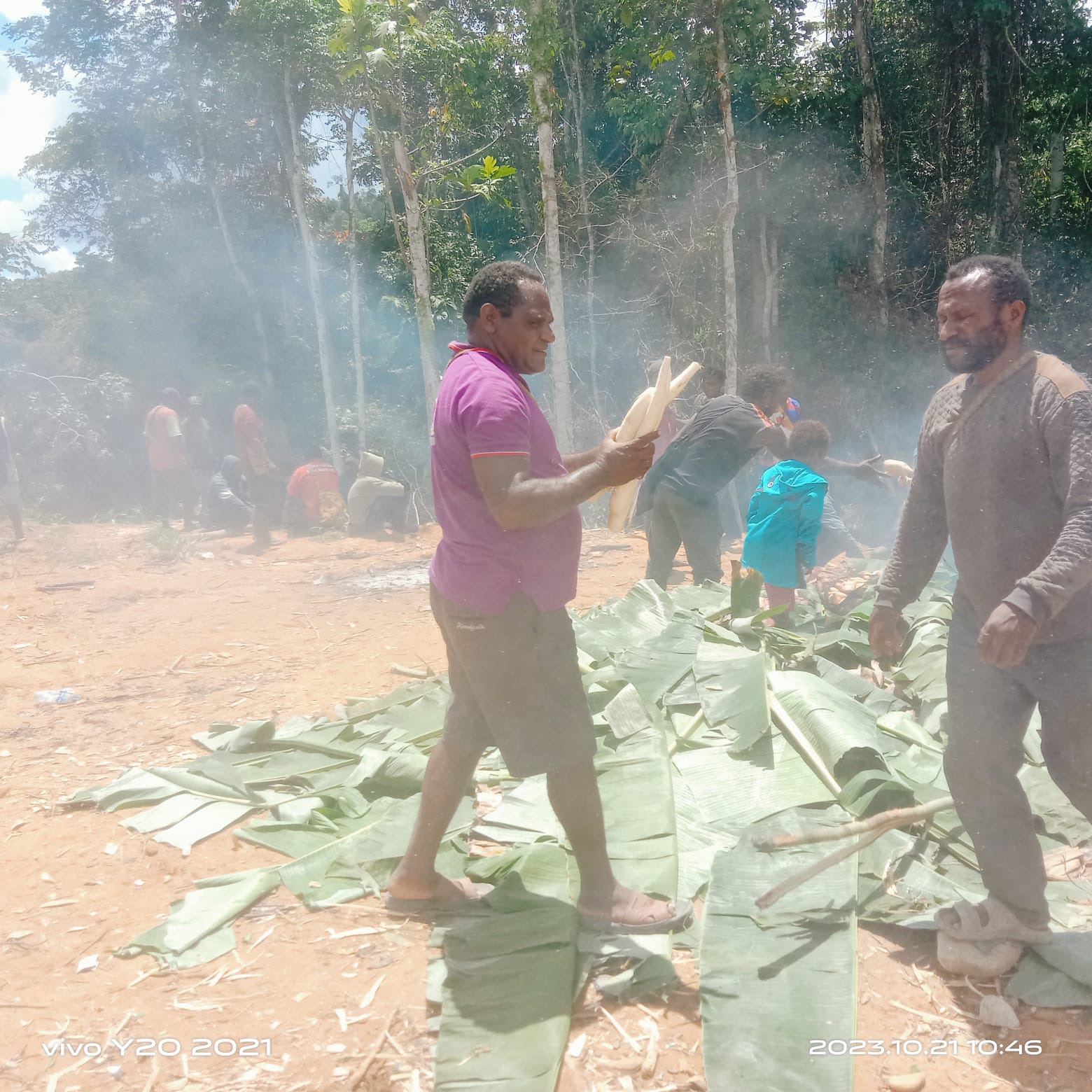 Nabire, Lembaga Suku Mee Rayon SIMAPITOWA dari 14 Distrik di Kabupaten Nabire, Deiyai dan Dogiyai, melaksanakan ibadah dalam rangka syukuran sekaligus penanaman tapal batas tanah adat Suku Mee dengan Suku Pesisir Nabire, Sabtu (21/10/2023).