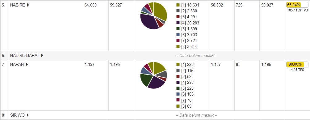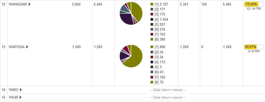 Data suara 52.40% tersebut berasal dari 175 TPS dari 334 TPS. 175 TPS tersebut berasal dari 9 Distrik dari keseluruhan 15 Distrik yang ada di Nabire.