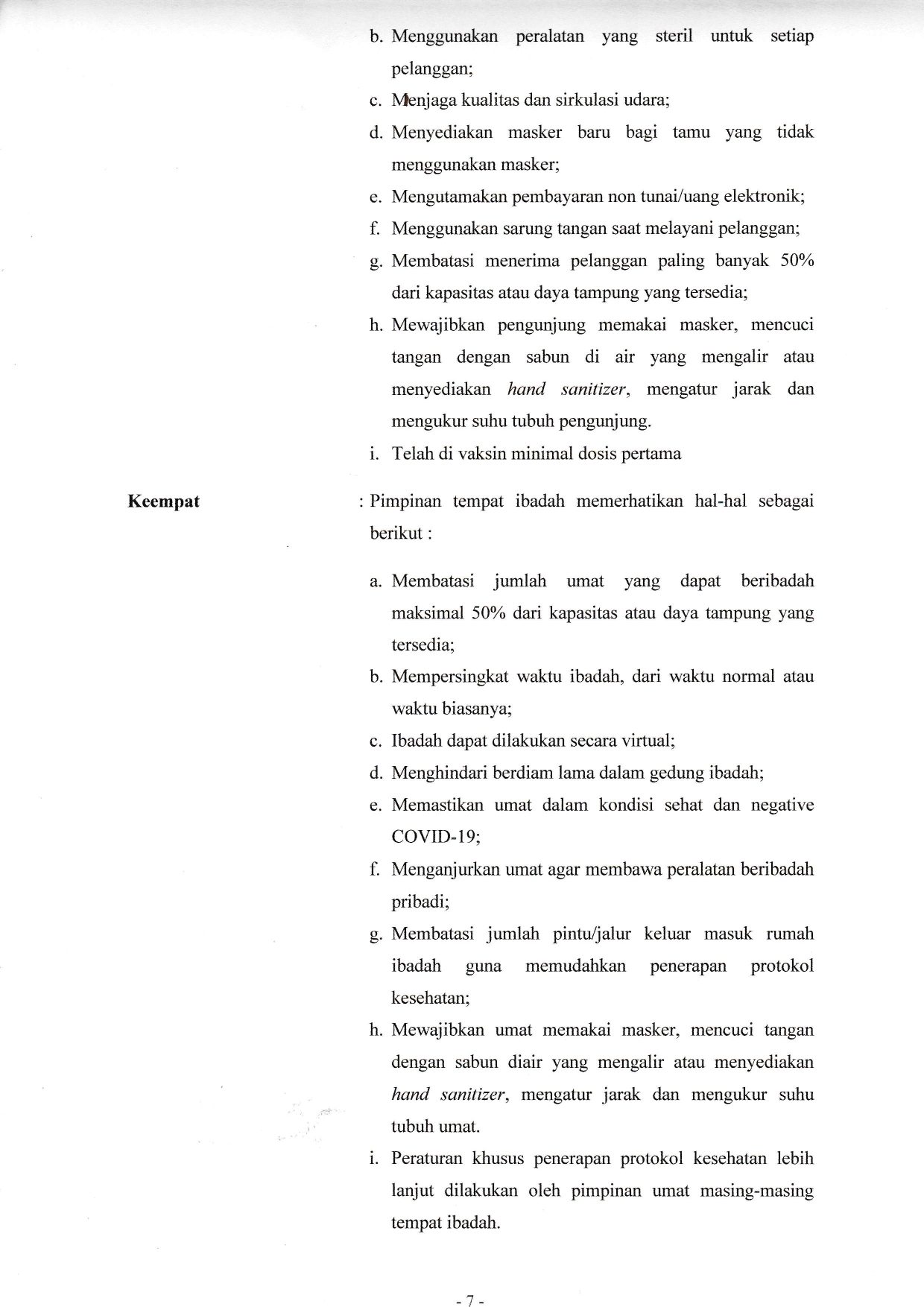 Instruksi tersebut dikeluarkan hari ini, Rabu (07/07/21). Instruksi ini sendiri menindaklanjuti instruksi Mendagri Nomor 14 tahun 2021 tentang PPKM Berbasis Mikro.