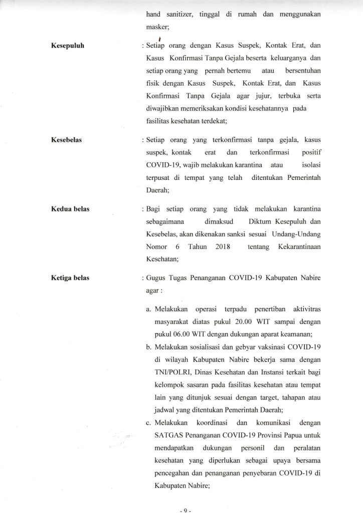 Ini Instruksi Bupati Nabire Tentang Peningkatan Langkah Pencegahan & Penanggulangan Covid-19
