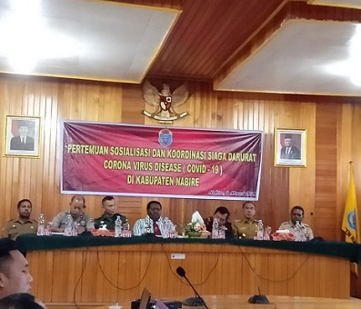 Nabire – Bertempat di ruang rapat Setda Kabupaten Nabire, senin (09/03), telah dilaksanakan pertemuan sosialisasi dan koordinasi siaga darurat corona virus disease (Covid-19) di kabupaten Nabire.