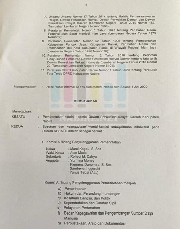 Ini Susunan Lengkap Kelengkapan DPRD Nabire Yang Terbentuk