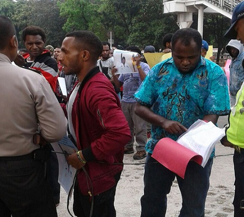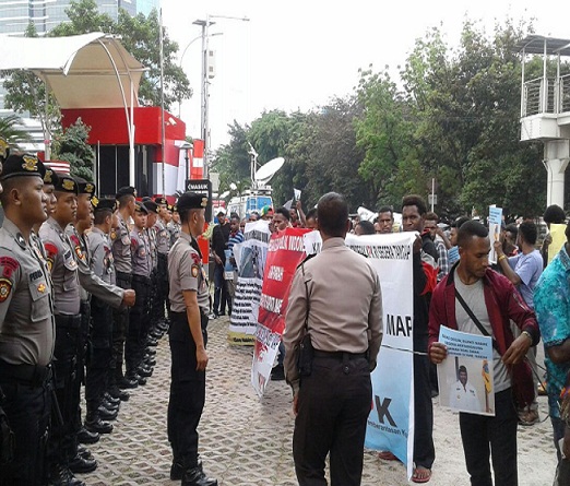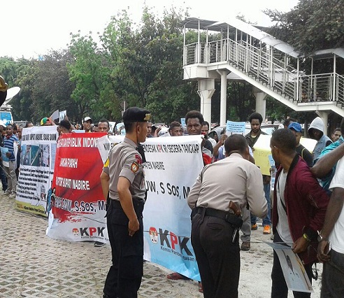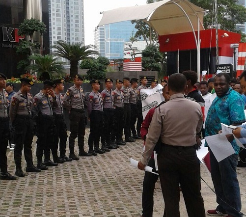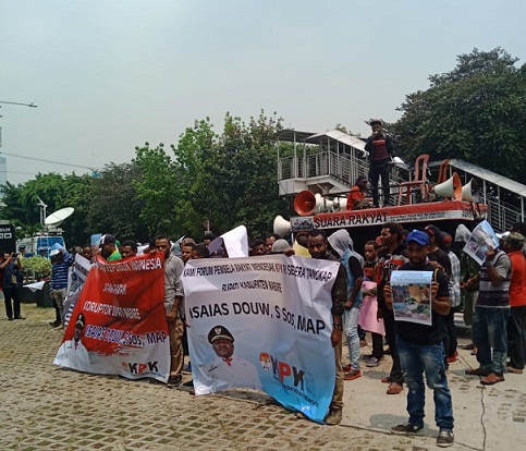 Aksi demo damai Forum Gerakan Anti Korupsi (FGAK) dibawah koordinator Ketua Gerakan Nasional Pencegahan Korupsi (GNPK) wilayah Papua, Jeckson Ikomou, berlangsung di depan Gedung Komisi Pemberantasan Korupsi (KPK), Jalan Rasuna Said, Kuningan, Jakarta Selatan, Selasa 28 Agustus 2018.