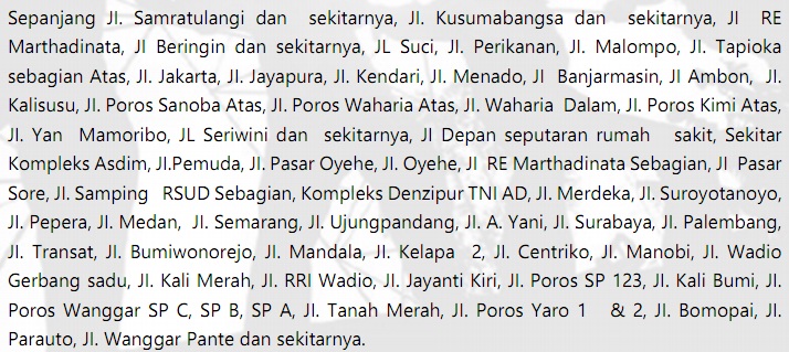 Berikut wilayah di Nabire yang akan terdampak pemadaman tersebut :
