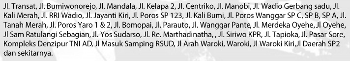 Berikut wilayah di Nabire yang akan terdampak pemadaman tersebut :