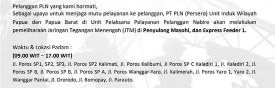 Atas ketidaknyamannya, PT. PLN Rayon Nabire memohon maaf kepada pelanggan PLN di Nabire.