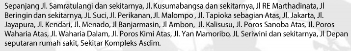 Berikut wilayah di Nabire yang akan terdampak pemadaman tersebut :