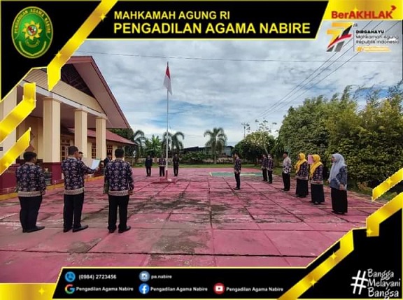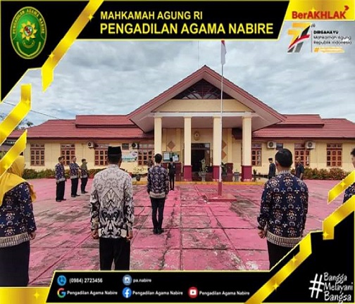 Bapak Joko Tri Raharjo, SH, salah satu Hakim pada Pengadilan Agama Nabire bertindak selaku Pembina Upacara dan diikuti oleh seluruh Pegawai. Upacara berjalan dengan begitu Hidmat dan lancar.