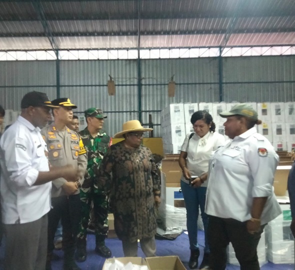 Ribka Haluk menambahkan usai rapat mereka juga mengecek gudang logistik Nabire, Dogiyai dan Intan Jaya yang ada di Kabupaten Nabire. Ia menilai ke tiga kabupaten ini telah siap dan semoga logistik Pemilu ini segera didistribusi.