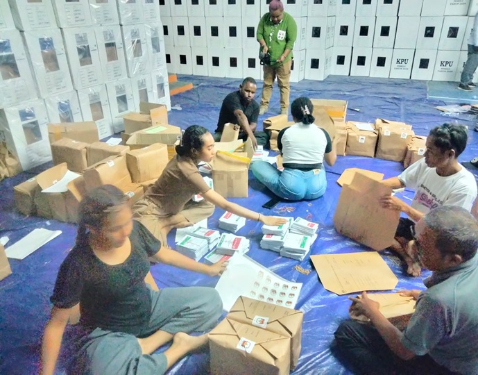“Seluruh KPUD telah siap melakukan packing dan selanjutnya tinggal melakukan pendistribusian ke daerah-daerah. Kami akan mulai mendistribusikan tanggal 9-11 Februari, mulai dari distrik terjauh, termasuk Dogiyai dan Intan Jaya. Intinya menjelang H-1 semua sudah berada di TPS masing-masing,” jelasnya.