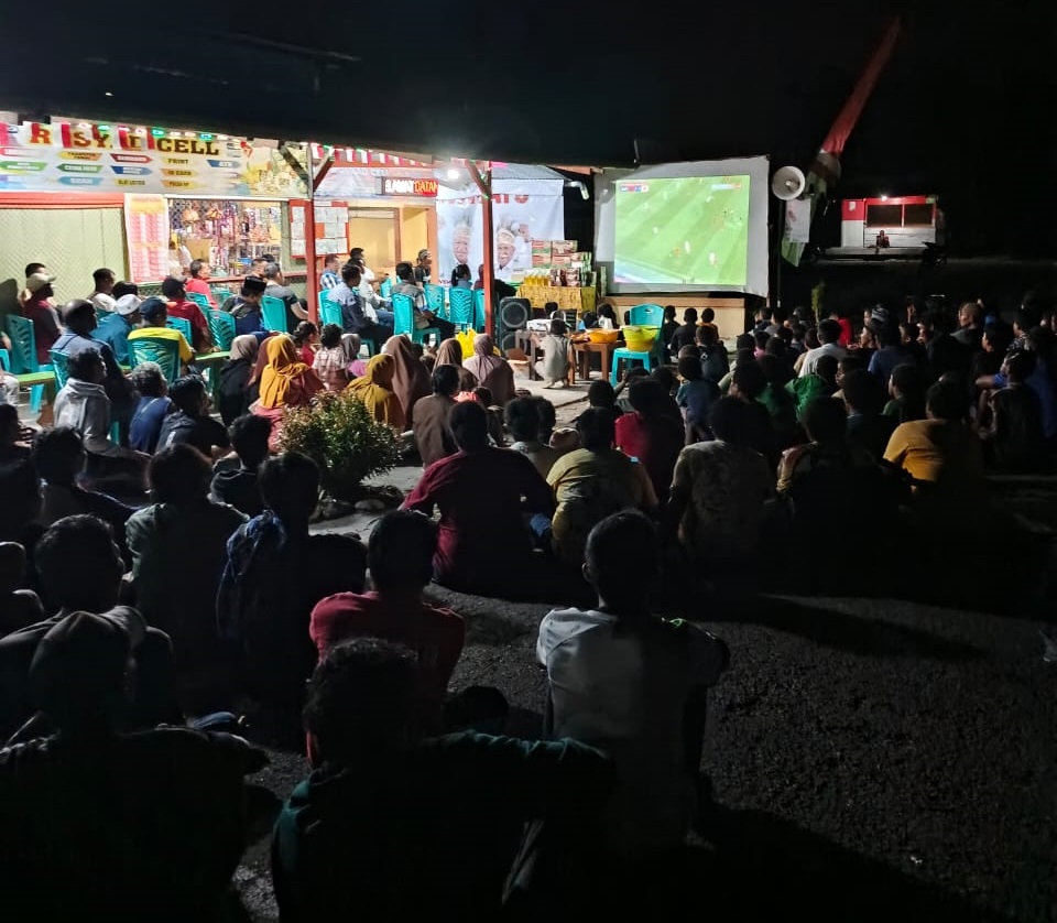Ratusan masyarakat setempat berkumpul dengan semangat nasionalisme, menjadikan acara nobar ini lebih dari sekadar tontonan olahraga. JWW, yang selalu dikenal sebagai pemimpin yang dekat dengan rakyatnya, terlihat menikmati suasana kebersamaan tersebut, bercengkerama dengan warga, berbagi tawa, dan ikut menyemangati Tim Nasional Indonesia sepanjang pertandingan. Di sampingnya, Ibu JWW turut berbaur dengan warga, memberikan sentuhan kehangatan yang semakin mempererat rasa kekeluargaan.