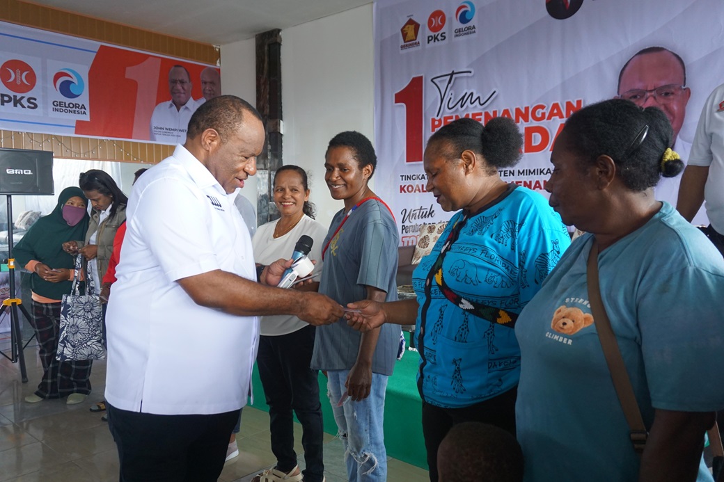 Mimika, 9 Oktober 2024 — Sore yang penuh semangat di Lorong Kecil, Jalan Busiri Ujung, saat ratusan Relawan Pasar Sentral berkumpul untuk menyambut kedatangan John Wempi Wetipo (JWW) beserta Ibu dan rombongan. Sambutan antusias dan penuh kehangatan dari para relawan ini menegaskan semangat yang berkobar untuk memenangkan pasangan John Wempi Wetipo dan Ausilius You (JWW AYO) di Pilkada Papua Tengah.