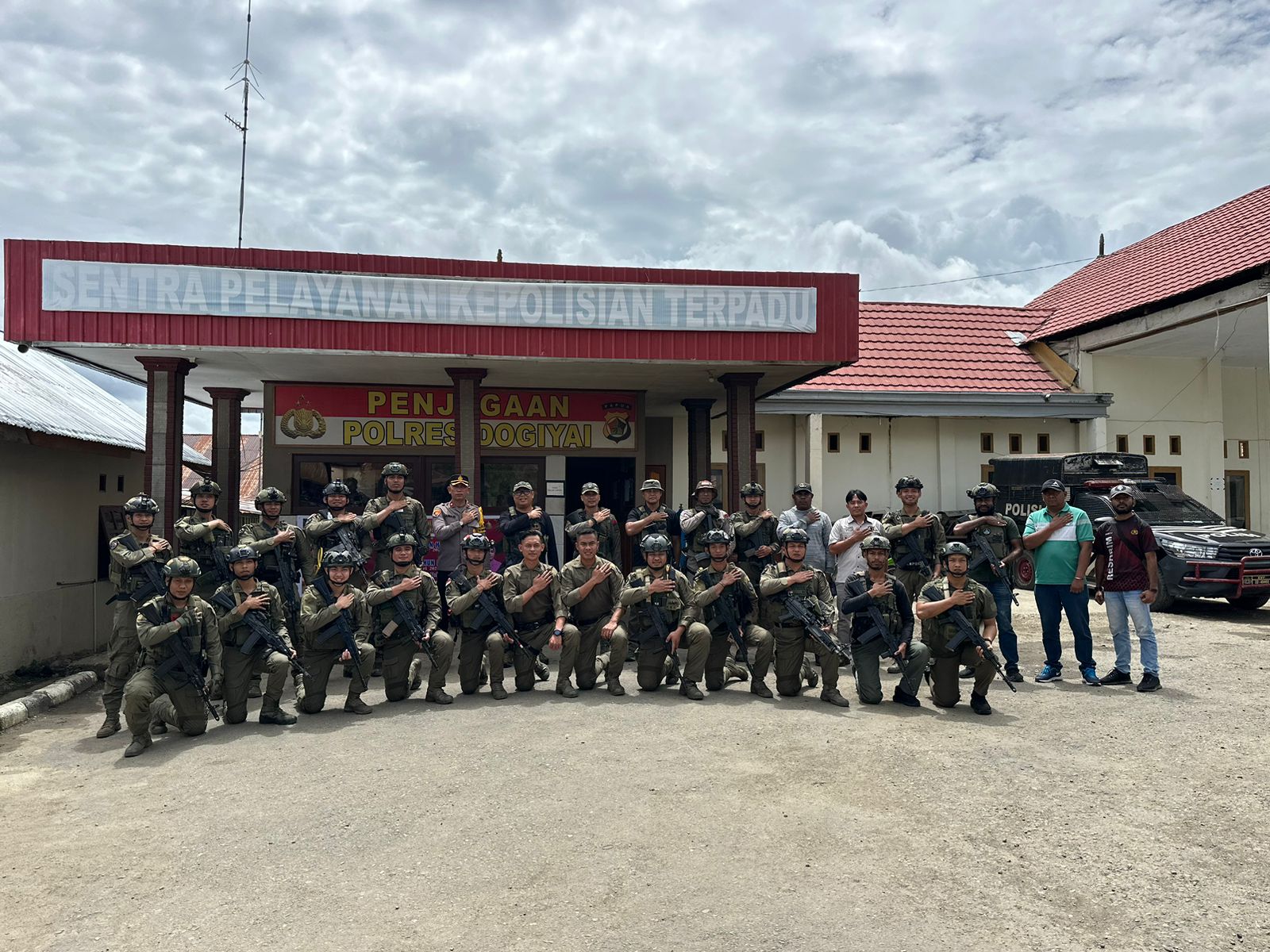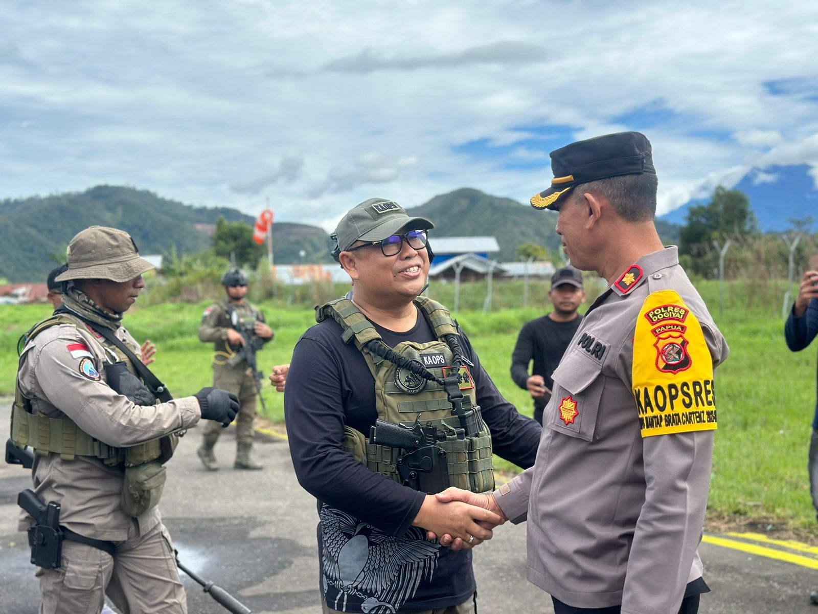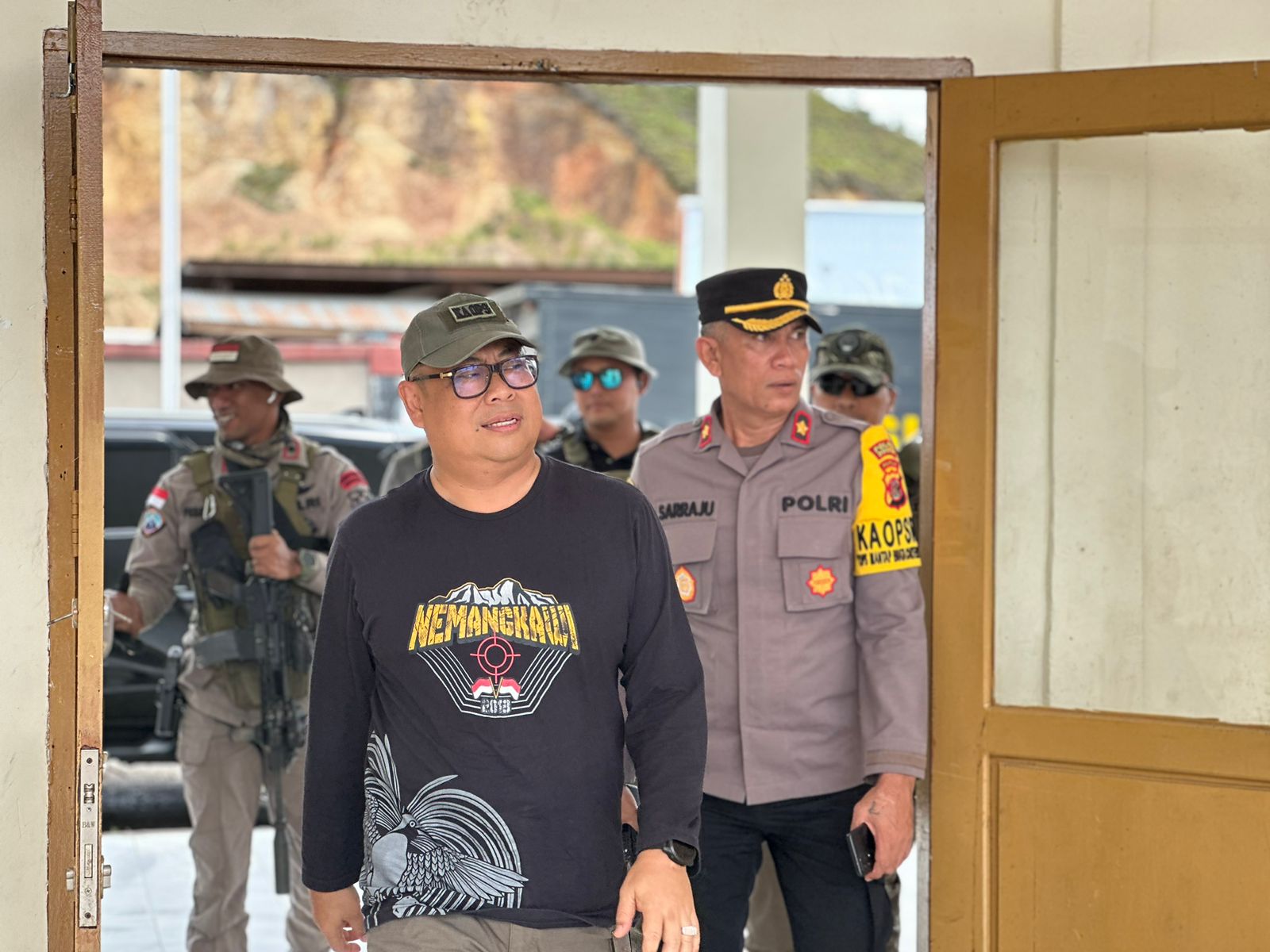Dalam kunjungan ke Dogiyai, Ka Ops Damai Cartenz 2023 didampingi oleh AKBP Dr. Batu Suseno, SH, SIK, MM, MH selaku Ka Satgas Humas, AKBP Egia FK, SIK, MIK sebagai Ka Posko Ops Damai Cartenz, serta Kompol Febiean Ignasius, SH. SIK sebagai Pasi Ops Tindak dan beberapa personil satgas Damai Cartenz 2023.