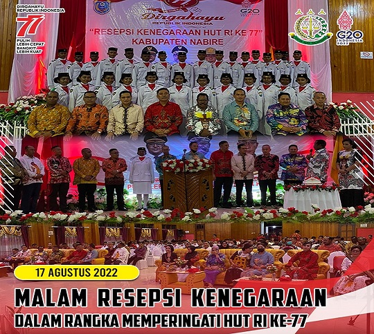 Malam harinya, Kajari, Muhammar Rizal mengikuti resepsi kenegaraan dalam rangka HUT RI ke-77 di Guest House, Jalan Merdeka, Nabire.