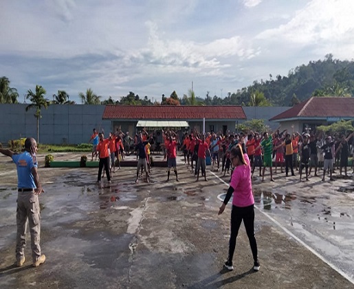 Kegiatan senam bersama tersebut dilaksanakan di halaman Lapas Kelas 2B Nabire, Jumat pagi (14/01).