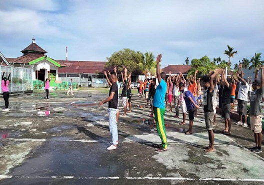 Nabire, Kepala Lembaga Pemasyarakatan (Kalapas) Kelas 2B Nabire, Manuel Yenusi, S.Sos, mengajak Warga Binaan Pemasyarakatan untuk mengikuti kegiatan senam bersama.