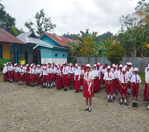 Kanit Lantas Polsek Nabire Kota Pimpin Upacara Bendera Di SD Negeri Inpres 02 Girimulyo