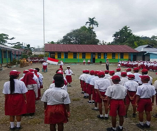 Upacara bendera senin pagi di SD Negeri Inpres 02 Girimulyo Nabire berjalan aman dan tertib, serta diakhiri dengan foto bersama.