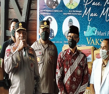 Kegiatan pelaksanaan gebyar vaksin tersebut merupakan kerjasama antara Pengurus Cabang Nadhlatul Ulama (PCNU) kabupaten Nabire dengan Polres Nabire.